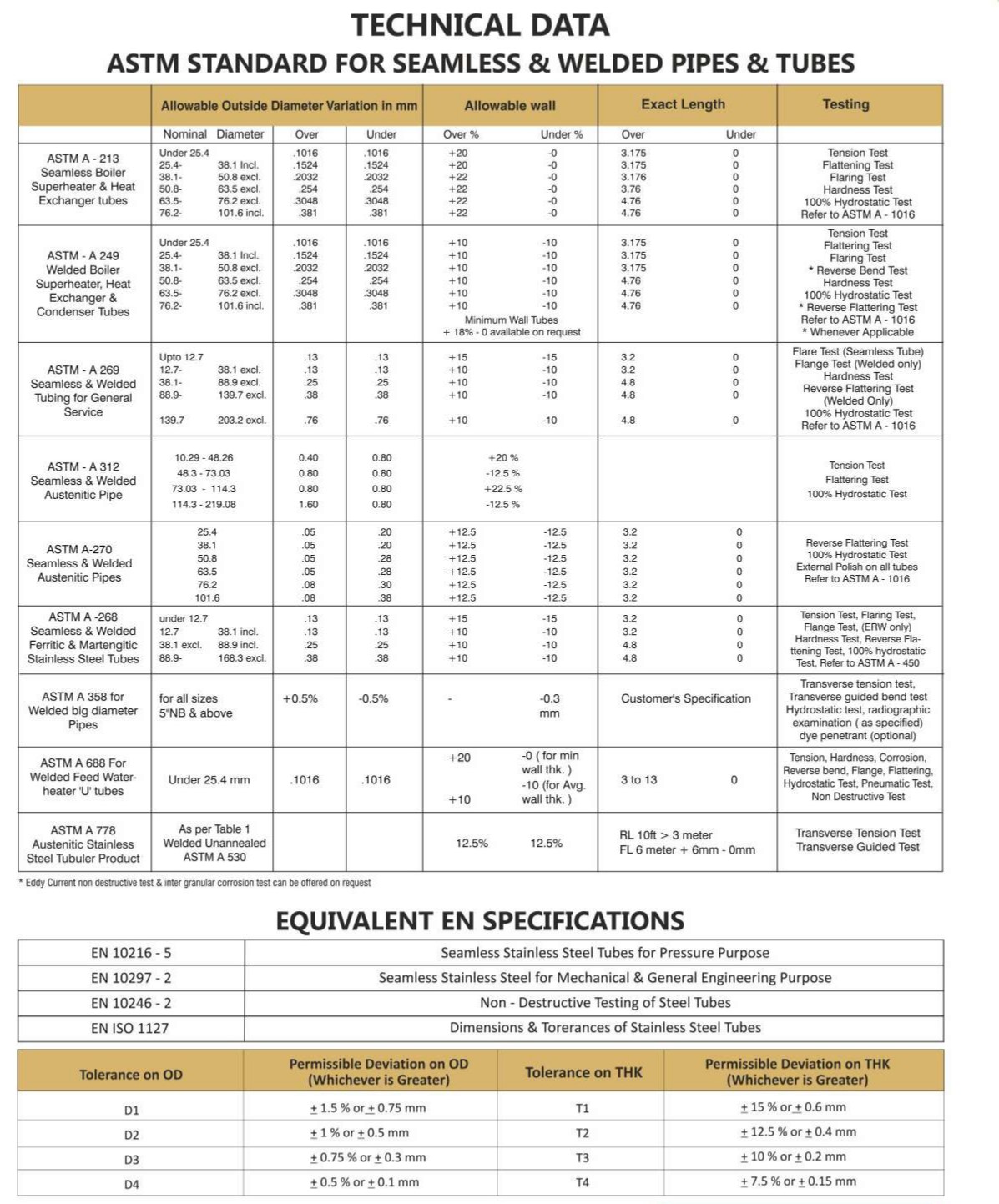 ASTM & EN Specefication & Tolerance